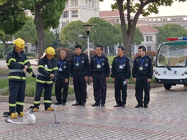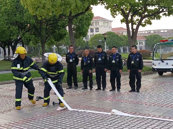 为应对炎热季节消防隐患问题,切实做好学校消防安全工作,进一步提升保安队员的应急处理能力,5月10日,松江校区组织保安队员开展微型消防站义务消防员训练活动。