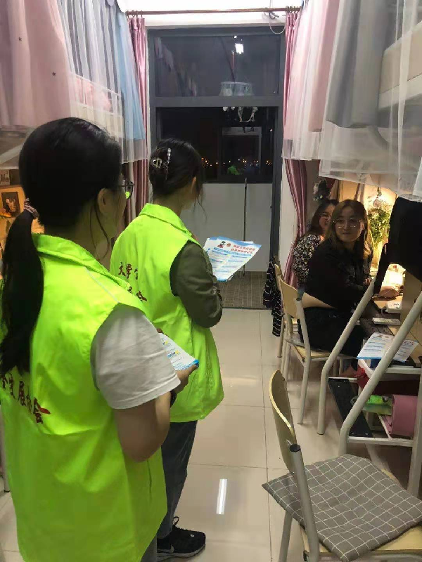 “同学,您通过应用市场下载一下国家反诈中心APP,绑定一下微信和QQ,如果您遇到诈骗,警方会第一时间帮您拦截或者打电话提醒您。”“96110来电一定要及时接听,这是国家反诈中心对群众预警劝阻和反诈宣传的专用号码。”由保卫处干部、派出所民警、大学生平安志愿者行动队组成的反诈骗宣传队伍深入学生公寓开展入户宣传工作,向学生发放反诈骗宣传单,一对一、面对面、点对点地宣传反诈骗知识。
