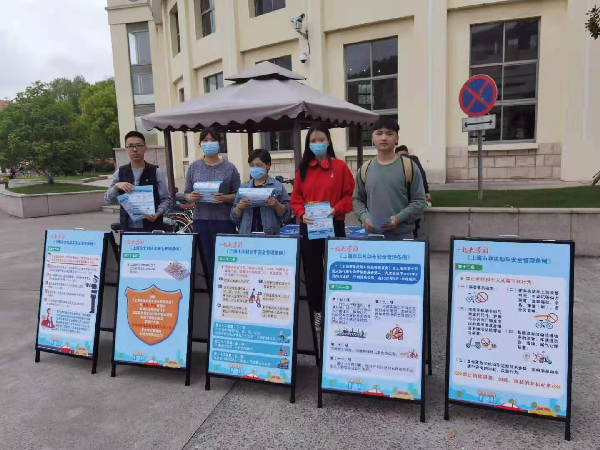 2021年4月25日,大学城派出所警官与大学生平安志愿者在学子餐厅门口对2021年5月1日起施行的《上海市非机动车安全管理条例》进行宣传,对与全体师生员工息息相关的第十二条、二十一条、二十二条、二十七条、三十六条内容进行了宣传教育,重点强调了电动自行车驾驶人和乘坐人员佩戴安全头盔,停放非机动车时应停放在非机动车道路停放点,禁止单位和个人拼装、改装、加装非机动车,行经人行横道时礼让行人,不得实施以手持方式拨打接听电话、浏览电子设备等妨碍安全驾驶的行为。