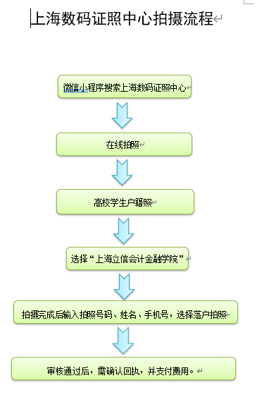 1.户籍照片在线拍摄办法:关注微信服务号“平安立信”,回复“随申办”可获得新生落户人像采集(随申办流程)(上川路校区、文翔路校区可用),回复“数码证照”可获得新生落户人像采集(上海数码证照中心流程)(上川路校区可用)。